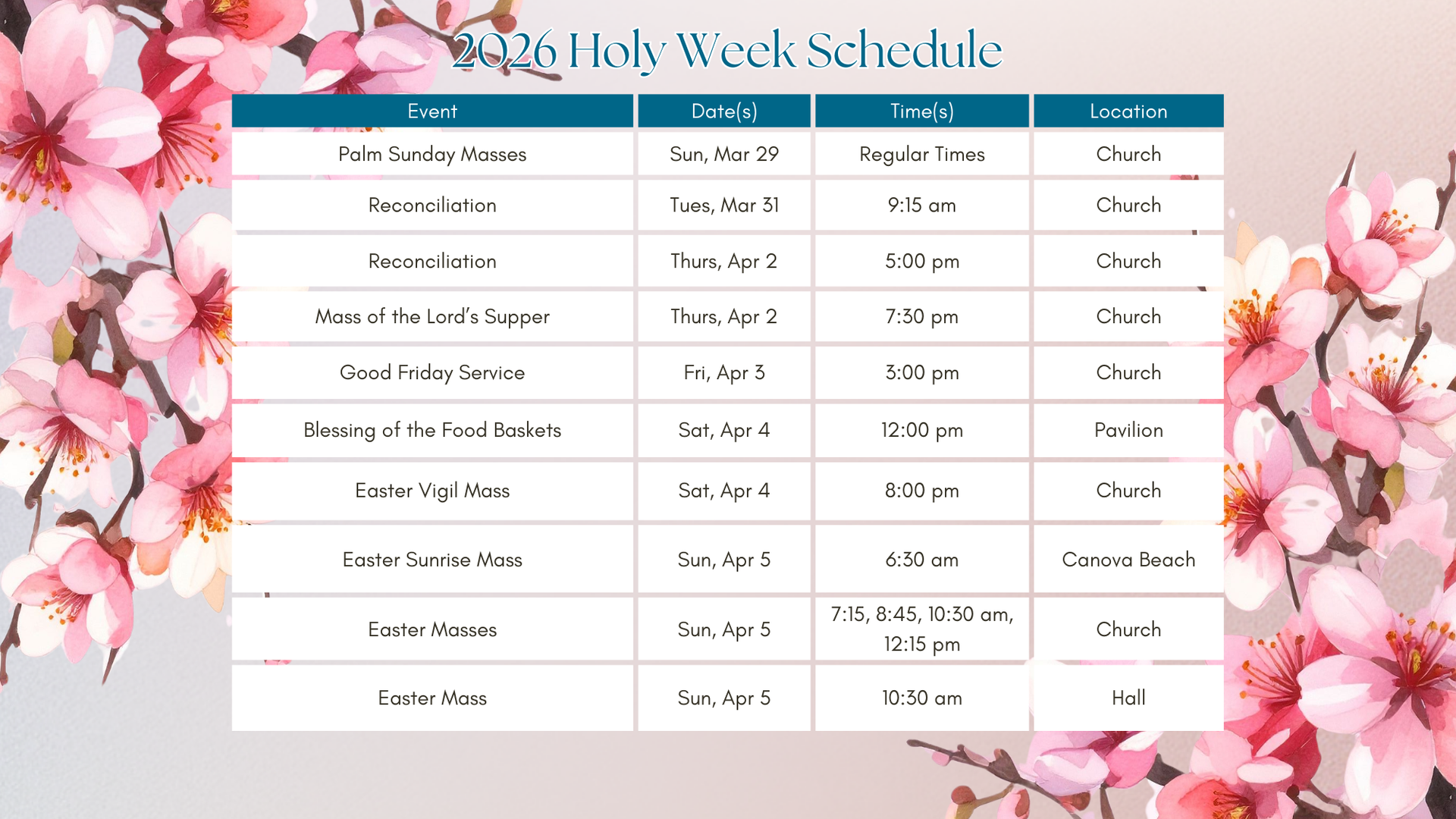 We invite you to remember the events of Christ's passion and death that are told in the week that precedes Easter.