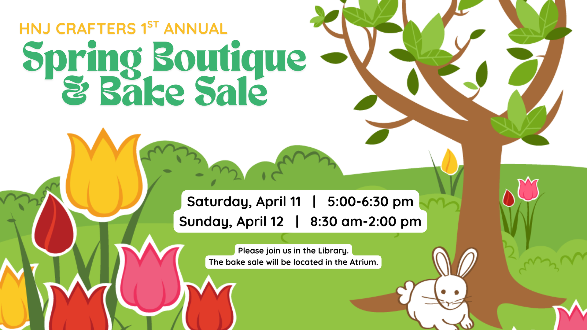 Please join us for our annual Spring Boutique and Bake Sale! We will be located in the Atrium and the Library.