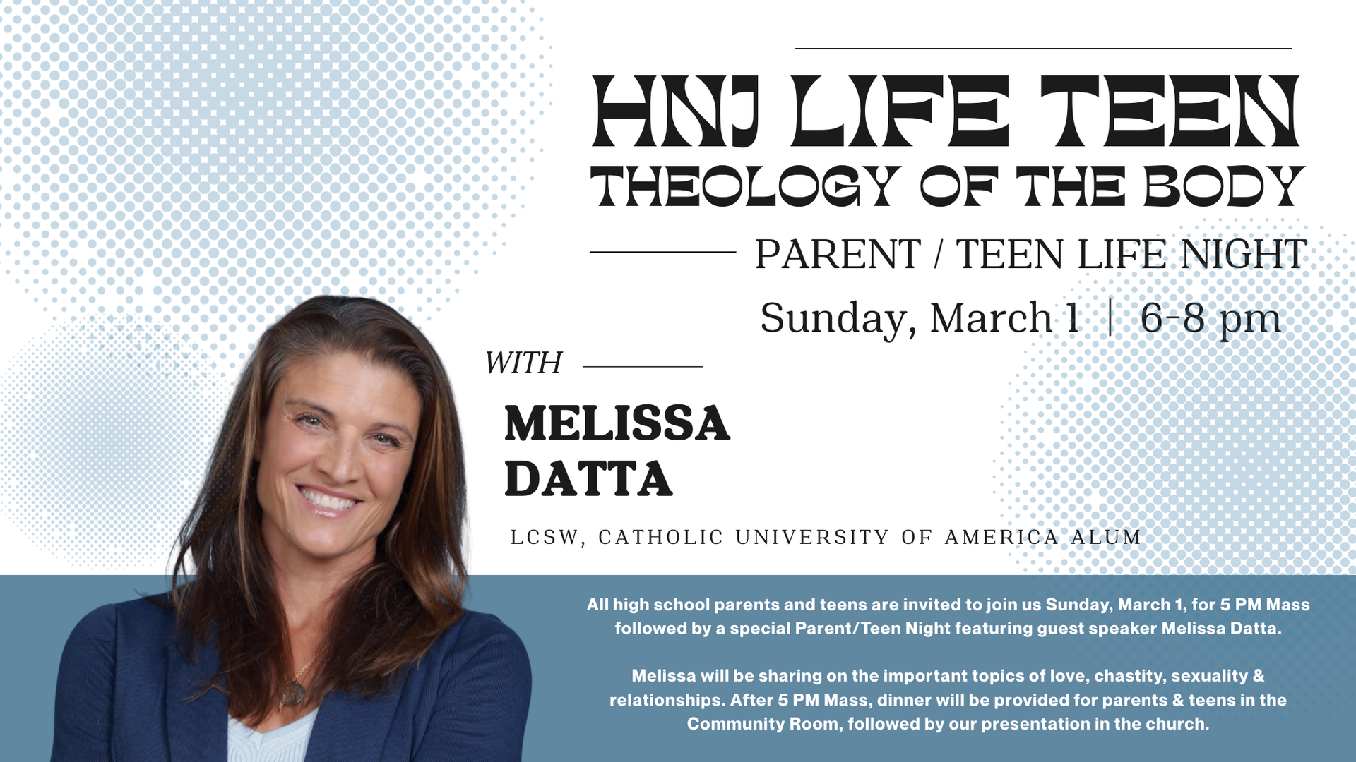 Melissa Datta will be sharing about the important topics of love, chastity, sexuality and relationships.